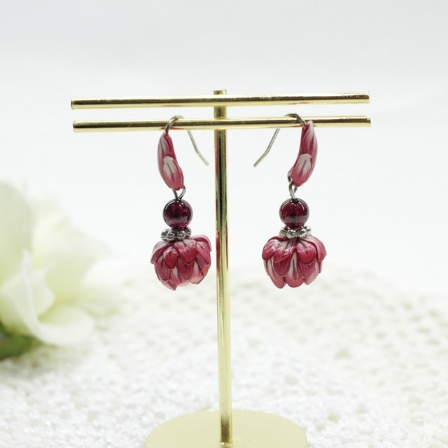 1点もの!樹脂粘土と天然石★花びらのイヤリング★送料無料