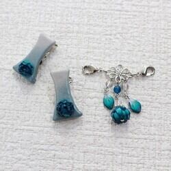 クリップ部分とセンターの飾りにつけてあるパーツはオーブンで焼くタイプの樹脂粘土で細工を施しています。