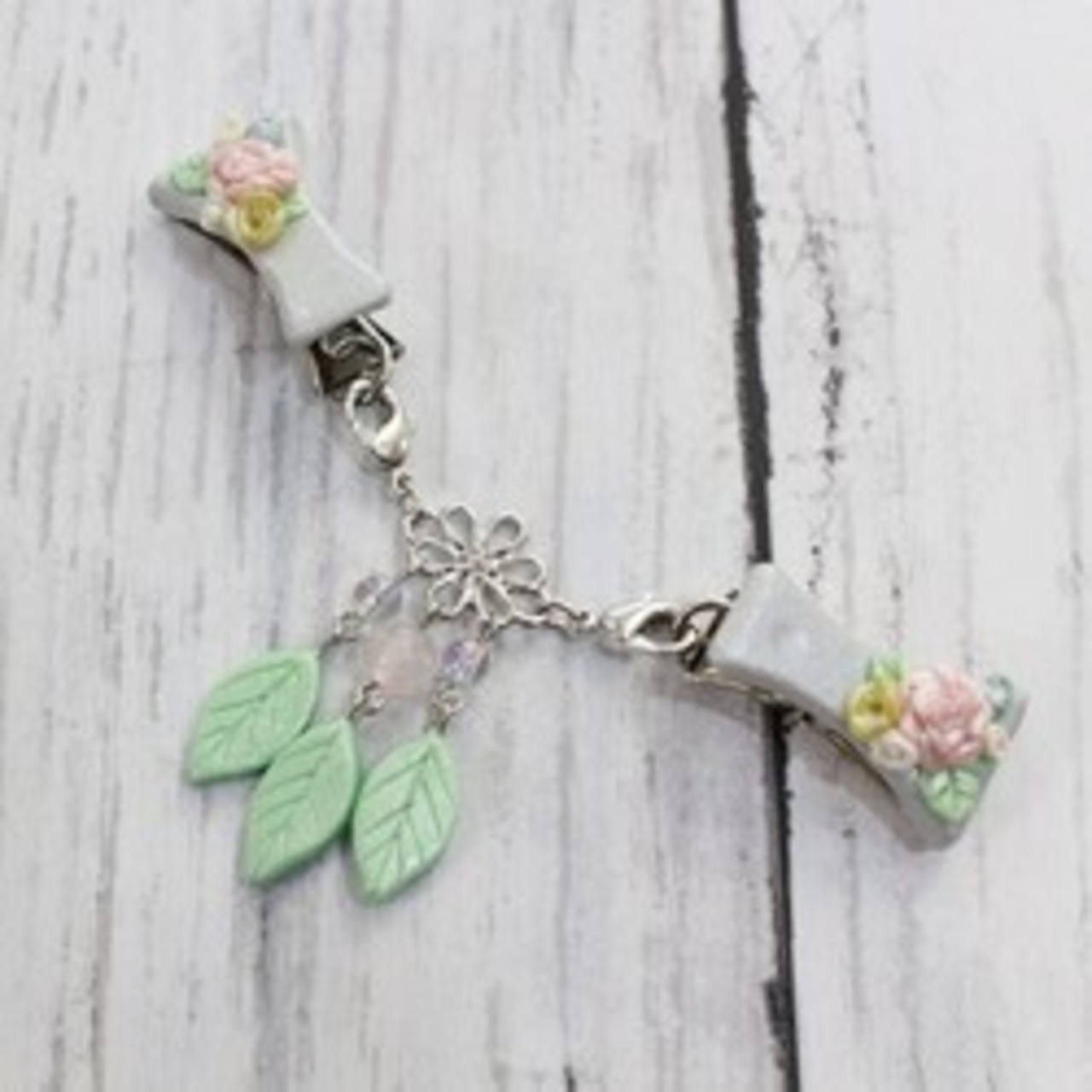クリップ部分とセンターの飾りにつけてあるパーツはオーブンで焼くタイプの樹脂粘土で細工を施しています。