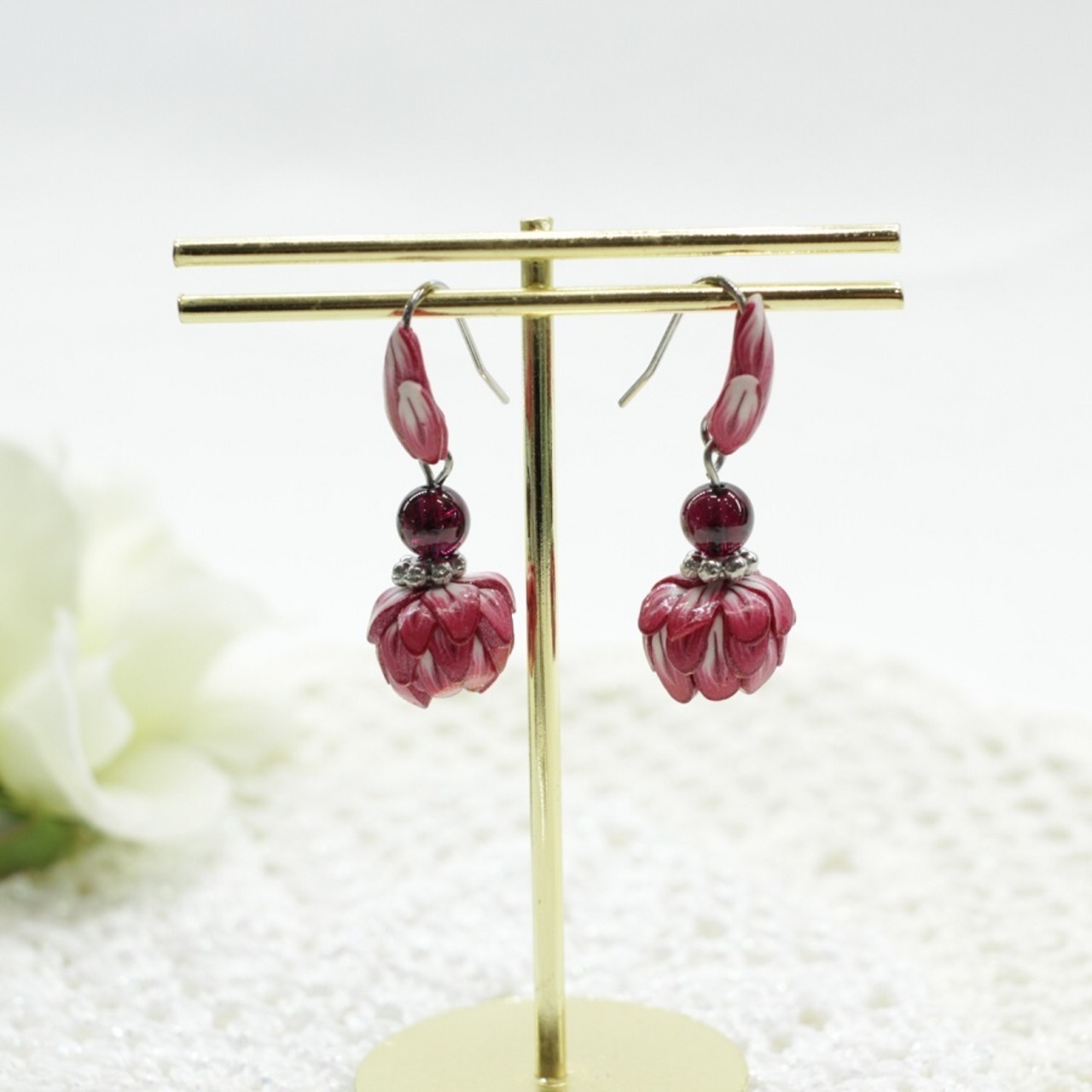 フックタイプのピアス金具は同じ柄のクレイで包んで加工を施しているので着用した時に