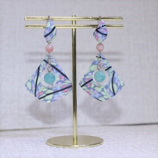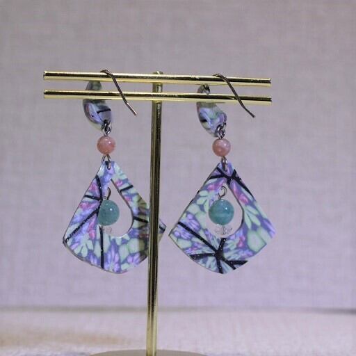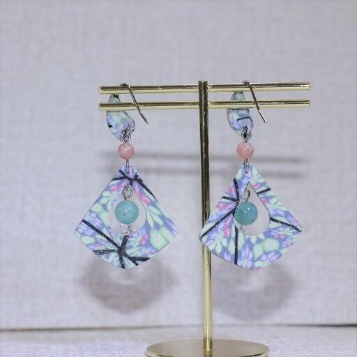 フックタイプのピアス金具は同じ柄のクレイで包んで加工を施しているので着用した時に