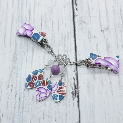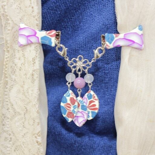 クリップ部分とセンターの飾りにつけてあるパーツはオーブンで焼くタイプの樹脂粘土で細工を施しています。