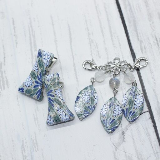 クリップ部分とセンターの飾りにつけてあるパーツはオーブンで焼くタイプの樹脂粘土で細工を施しています。