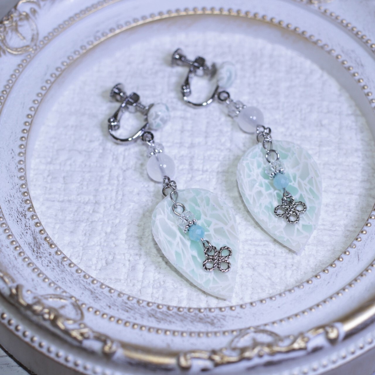 イヤリング金具はロジウムを使用していますので、アレルギーのある方、不安な方はご購入をお控えください。